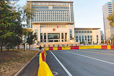 ■山東省高院門前設置了記者拍攝區。 于永傑 攝