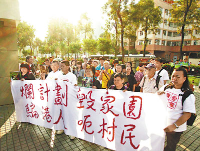 發展局局長陳茂波昨日前往北區政府合署,與受新界東北發展計劃影響的村民代表舉行閉門會議。約50名新界東北村民則在場外請願,要求不遷不拆和撤回新界東北發展計劃。陳茂波表示,對不遷不拆訴求「恕難從命」,而現時正輪候公屋單位的申請多達20多萬宗,故讓受影響村民免入息和資產審查入住公屋實有困難,亦會對現行制度有牴觸,但他承諾未來會落區與村民會面。 香港文匯報記者黃偉邦 攝