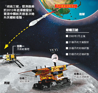 探月工程是中國16項國家科技重大專項之一,承擔「落月」任務的嫦三是探月工程「繞、落、回」三步走中的關鍵一步,將實現中國航天器首次地外天體軟著陸和月面巡視勘察,具有重要的里程碑意義。嫦三任務自2008年2月立項以來,先後經歷了21個月的方案設計、26個月的初樣研製、20個月的正樣研製,目前蓄勢待發。