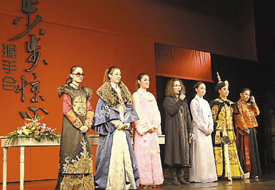 日前,浙江小百花越劇團團長茅威濤(中)攜青春版越劇《步步驚心》主要演員亮相握手會。 當日,該劇握手會在浙江小百花越劇團舉行,該團團長茅威濤帶領全戲裝造型的90後小演員李雲霄、陳麗君、洪帥和中生代小演員蔡浙飛、章益清、魏春芳登臺亮相,並與觀眾們互動。青春版越劇《步步驚心》將於11月15日、16日在杭州劇院上演。 ■攝︰新華社