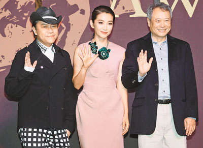 ■右起:李安、李冰冰及蔡康永擔任2013年金馬評審。中央社