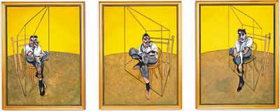 培根(Francis Bacon)1909年生於愛爾蘭,並先後在柏林、巴黎和倫敦任職侍從和室內設計師。他1920年代開始繪畫,初期並未受重視,直至1944年的《以受難為題的三習作》開始引起注意,其後一系列抽象頭部和身體肖像,為他奠定了抽象肖像始祖級大師的地位。