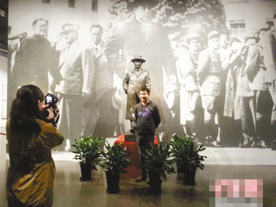 ■參觀者與周恩來雕塑合影留念。網上圖片
