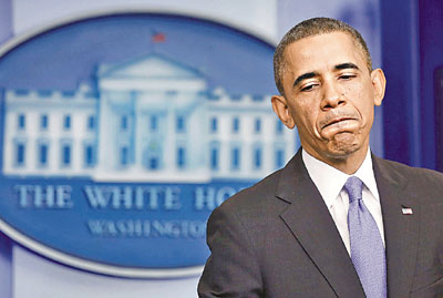 ■奧巴馬前日談及醫保時苦口苦臉。路透社