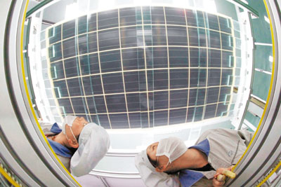 ■連維良昨日表示,未來發改委改革重點是下放投資項目審批權限。圖為江蘇一家能源公司的工人在檢驗太陽能光伏產品。新華社