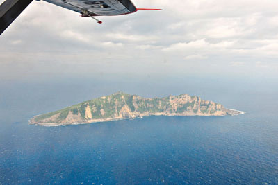 ■中國在東海設立防空識別區,引起中日爭議,兩國互召大使抗議。圖為去年底中國海監B-3837飛機拍攝的釣魚島及其附屬島嶼畫面。 資料圖片