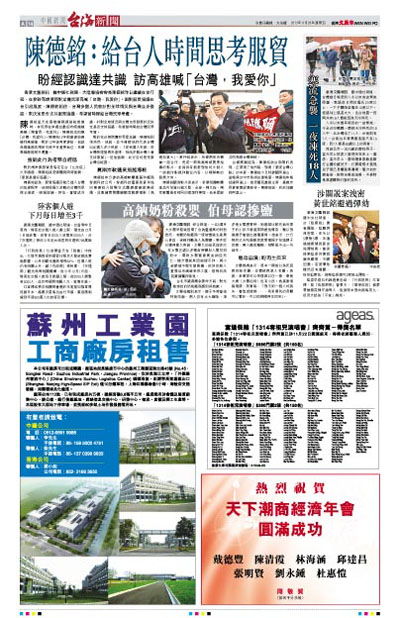 對於在台期間遭到零星抗議,陳德銘則很淡然,他說,並不清楚他們代表台灣2300萬人多少民意,「從我個人來說,從台灣長遠發展來著眼,相信多數台灣人會支持服貿」。但他強調,此行目的是考察台灣自經區。