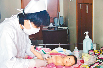 ■婦產科的醫生正在為剛出生的孩子做清洗。