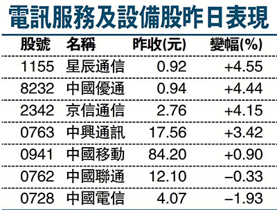 ¼¥¼©4G§ë¤J¼W¥[¡A¹q°T³]³ÆªÑ²v¥ý³Qª£°_¡AÀu³q(8232)¡B¨Ê«H(2342)¤É¹O4%¡A¤¤¿³(0763)¤É3.4%¡A¤¤³q«H(0552)¤É1.2%¡C¥«³õ¤H¤h®Æ¡A¹q°T³]³ÆªÑ¤µ¤éÁÙ·|¦³¦nªí²{¡C