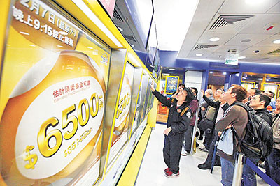 ■六合彩今晚攪珠,估計頭獎一注獨中可得6,500萬元。 曾慶威 攝