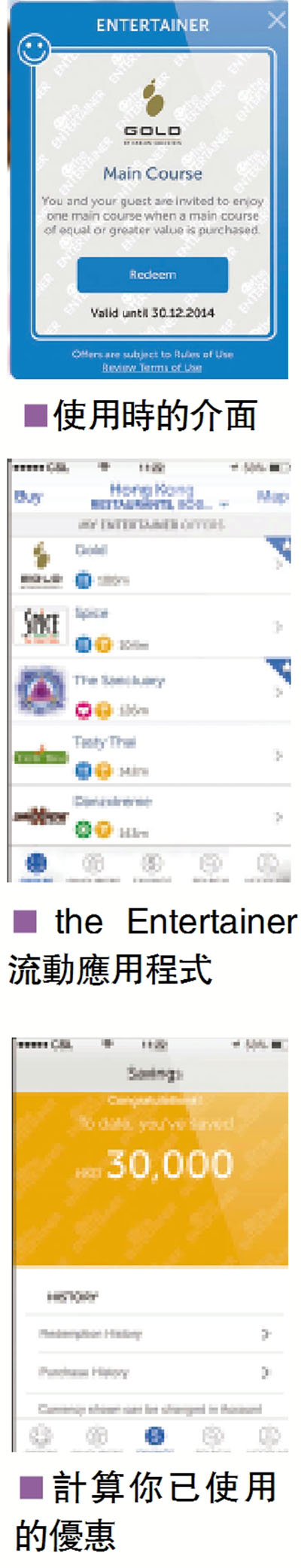 近年Apps流行,想不到原來來自迪拜的牌the Entertainer流動應用程式,內裡全部都是「買一送一」優惠券,當中包括城中炙手可熱的餐廳、水療中心,以至各式各樣的休閒娛樂場所等。今次,這個流動程式式首度來港,更推出限時額外六折優惠,只需HK$357(原價HK$595)便能享受超過港幣93萬元的總折扣優惠,據知,不少高級食肆都參與了,本來你不捨得花費的,現在可以各式各樣「買一送一」的方法來品嚐,為你節省不少,早前筆者曾於灣仔的Tamarind品嚐泰式菜,更享用了主菜買一送一優惠。