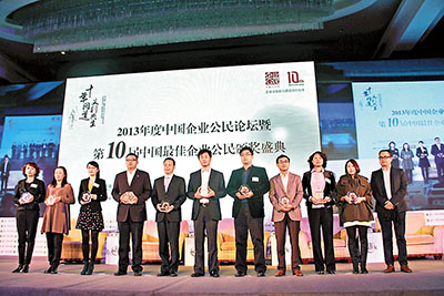 「第十屆中國最佳企業公民」和「2013低碳先鋒企業」頒獎儀式近日在北京舉行,青島啤酒接連獲選。 代表領獎的青啤製造中心總裁助理盧緒軍介紹,公司在酒糟、廢酵母、麥根、廢包裝物等方面回收利用率達100%,2008-2013年投資4.6億元人民幣用於節能環保。 ■記者 殷江宏 山東報道