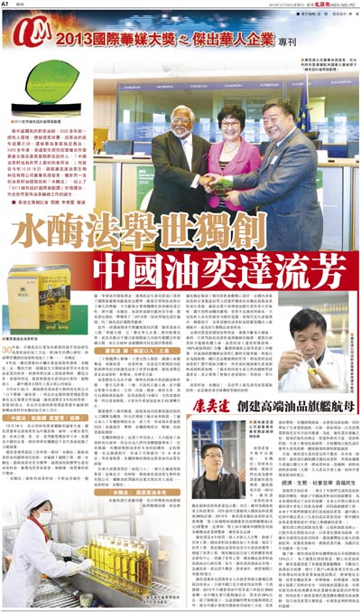 康奕達花4年時間,投入3億元人民幣,創建了世界上第一條油茶籽油水酶法加工生產線,制訂了世界上第一部水酶法油茶籽油安全生產技術標準,創建了世界上第一個水酶法綜合加工技術體系和產品研究中心,開闢了世界上第一個水酶法油茶籽油高端油品行銷市場。如今,康奕達高端油品市場,急遽放量,產品供不應求,投產兩年,銷售規模已突破30億元。