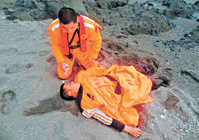 回憶海上驚魂的過程,曾連發眼角泛淚的說,當時一個大浪打來,他被捲到海裡,因不會游泳,天色昏暗完全分不清楚方向,只能掙扎;冰冷的海水,讓他體力漸次流失,幸運地摸到一塊長方形類似棺材板的木頭,就攀上去,緊抱不放,載浮載沉。