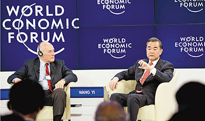 ■王毅在達沃斯世界經濟論壇2014年年會上批評日本當政者錯誤言行。新華社