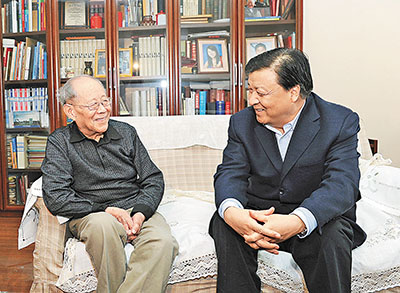 ■劉雲山看望爆炸力學專家、中國科學院院士、中國工程院院士鄭哲敏(左)。新華社