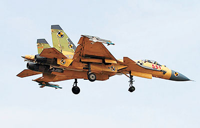 殲15艦載機最新訓練照近日曝光。照片中編號為551的殲15,飛行中掛載多達4枚空空導彈。所掛載的導彈中包括兩枚霹靂8格鬥導彈和兩枚霹靂12中距導彈,不過從細節上看很可能只是訓練彈。殲15掛載如此多空空導彈,很有可能是在演練奪取制空權戰術技能。 文/圖: 新浪軍事