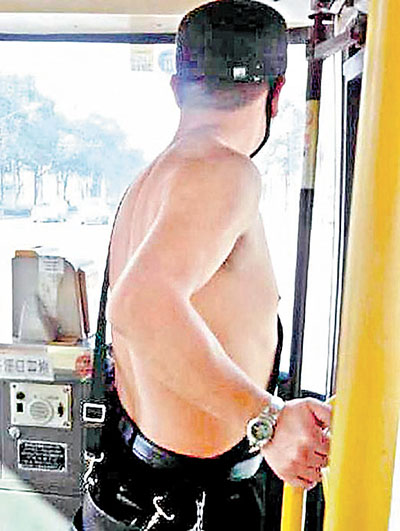 ■武漢反常高溫 21.8℃, 巴士現「赤膊哥」。 網上圖片
