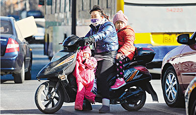 ■姚宏文昨日透露,目前內地已有上海、江蘇等9省按要求通過「單獨二胎」備案程序。圖為內地一名婦女帶兩名孩子出行。法新社