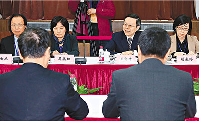■王郁琦昨到上海社會科學院與當地學者交換意見。 中央社