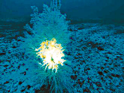 ■林銘聲拍攝的黑珊瑚,發光處是發現黑珊瑚時手電筒的亮光。網上圖片