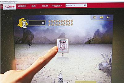 中國官方媒體《人民日報》下屬的「人民微博」昨日推出主題射擊遊戲「打鬼子」。在遊戲中,網友可挑選日本靖國神社中供奉的14位二戰甲級戰犯作為靶紙進行射擊。遊戲的推出旨在通過大家喜歡樂見的遊戲形式,揭露日本侵略者的戰爭罪行,使網友牢記歷史,不忘過去,珍愛和平,開創未來。 ■人民網