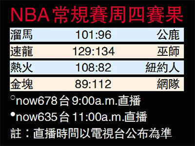NBA常規賽周四賽果 (2014-03-01) (圖)