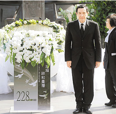 ■昨日,馬英九出席台北市「228事件」67周年追悼紀念會。法新社