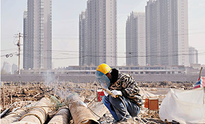 ■規劃提出拓寬住房保障渠道等一系列舉措。圖為工人在山西太原一處棚戶區改造工地施工。中新社