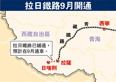 香港文匯報訊 據新華網報道,世界上海拔最高鐵路青藏鐵路的延伸線、拉日(拉薩至日喀則)鐵路已全線鋪軌貫通,預計今年9月可通車運行,未來從拉薩去日喀則只兩小時,屆時火車可直接到達班禪駐地。而青藏鐵路另一條延伸線-拉林(拉薩至林芝)鐵路也有望在今年開工。