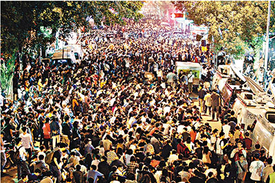 ■聲援民眾不斷湧入,「立法院」外的路段擠滿了人。 中央社