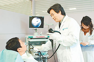 ■浙江省從下月起所有省級公立醫院和杭州市公立醫院將施行分級診療制度。圖為浙江一所醫院內醫生為病人診治。 網上圖片