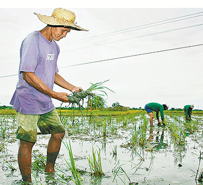 ■全球暖化對農業帶來嚴重衝擊,圖為菲律賓農民在水災過後,檢查損失。資料圖片