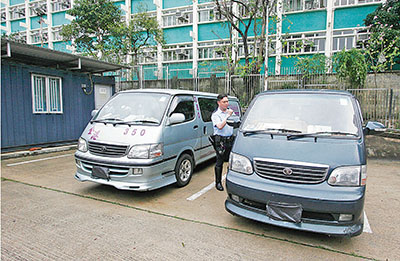 2名被捕客貨車司機分別姓梁(41歲)及姓胡(35歲),同涉「使用汽車以作出租或取酬載客用途」和「沒有第三者保險而使用車輛」被捕,已保釋候查。至於涉案2輛客貨車亦因分涉車輛殘缺及違反法規被拖走檢驗,包括車廂中間的分隔鐵網不符法例規定,中間乘客位沒有安全帶,司機位安全帶不能回彈,車尾沒有沙板、「光頭胎」,以及司機位裝有固定的大型顯示屏,阻礙及分散司機注意力影響駕駛安全等。