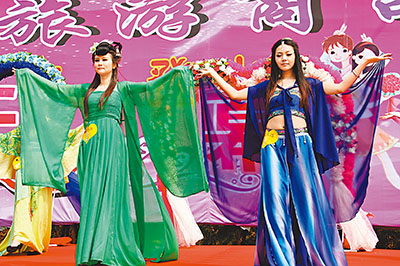 參加海選的「櫻花仙子」昨日在湖南洪江古商城境內的嵩雲山進行才藝比拚。當日,湖南洪江古商城「櫻花浪漫季」活動正式拉開序幕。「櫻花仙子」的出現吸引了數千名遊客的圍觀。 中新社