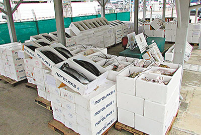 ■海關反海上走私行動中檢獲的一批走私海鮮。