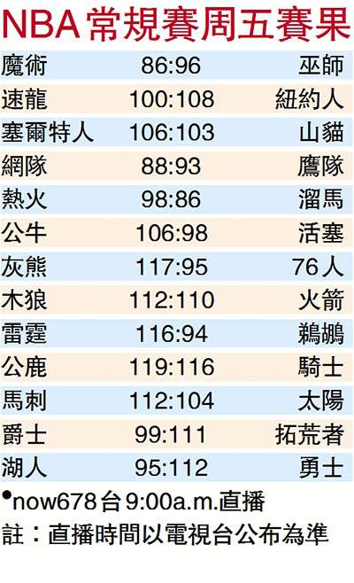 NBA常規賽周五賽果