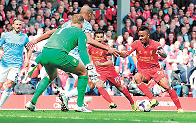 利物浦昨晚以「433」陣式迎戰曼城,由蘇亞雷斯、史杜列治及史達寧三叉戟攻向客軍,但賽前被指傷癒可復出的曼城前鋒阿古路,則只作後備,仍由迪斯高打單箭頭;上仗沒出的基捷基治則返回其左後衛崗位。