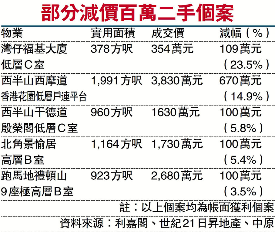 回歸理性:劈百萬離場 港島盤頻現 (圖)
