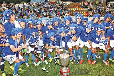 香港文匯報訊(記者 潘志南)傑志與南華昨晚在港甲聯賽踢成1:1平手,今季3次對賽全告和氣收場,賽後傑志一眾球員與球迷在一片歡騰中,正式慶祝重奪失落一季的聯賽冠軍。