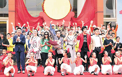 專列團團長馬鴻銘與廣西歌唱家池一萃合唱的《國家》,1,300多人起立配以手語高聲齊唱,將聯歡會推上高潮。