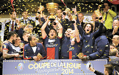 憑烏拉圭前鋒卡雲尼梅開二度,巴黎聖日耳門(PSG)在19日法國聯賽盃決賽以2:1力克里昂奪冠。