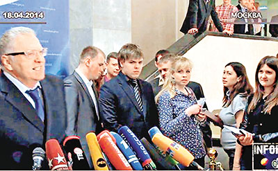 俄羅斯極右翼政黨自由民主黨(LDPR)創辦人兼下院國家杜馬副議長日羅諾夫斯基,上周五在一個記者會上口出狂言,下令兩名男助手「暴力地強姦」在場一名懷有6個月身孕的女記者,女記者受驚入院。