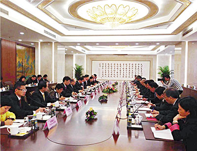 ■香港傳媒高層訪京團昨日拜訪外交部。 香港文匯報記者馬靜 攝