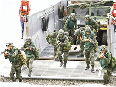 ■台灣海軍陸戰隊日前演練搶灘登陸。網上圖片
