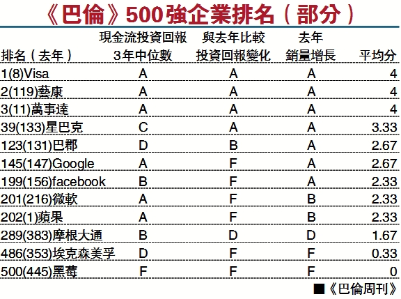 《巴倫》北美500強企業 蘋果大跌201名