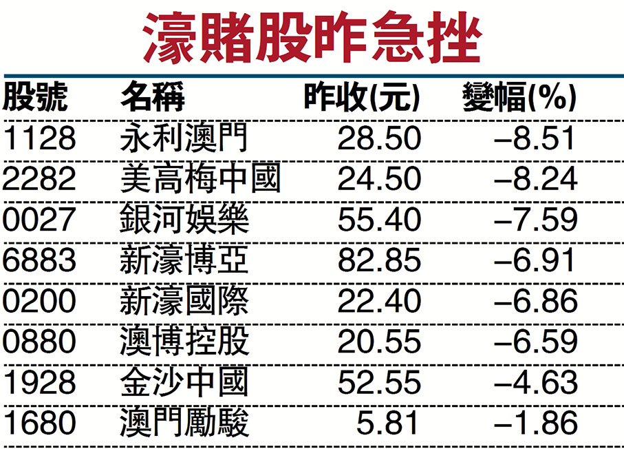 利淡消息不斷 洗倉潮持續 濠賭股災 8股蒸發近千億 (圖)