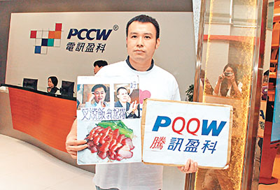 ■陳姓股東為電盈新設計「PQQW」商標。張偉民 攝