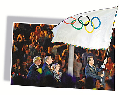 ■里約熱內盧市長前年在倫敦奧運閉幕禮上接過奧運旗。資料圖片