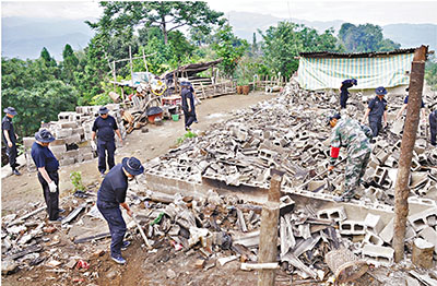 ■一周兩次強震造成當地民房、學校等倒痁Y重,當局全力展開抗震救災工作。本報雲南傳真